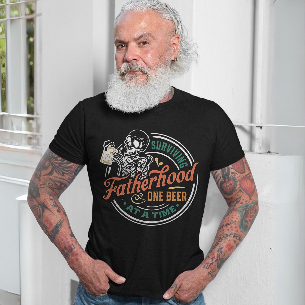Surviving Fatherhood One Beer At A Time Skeleton Dad T-Shirt