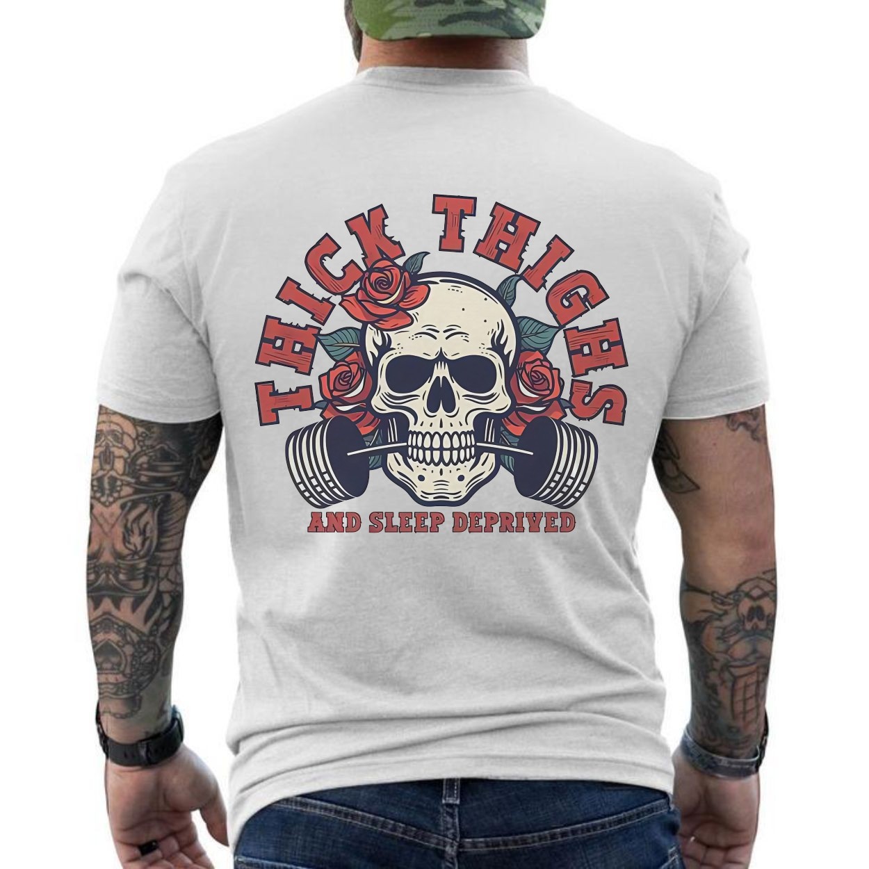 Thick Thighs and Sleep Deprived T-Shirt – Skull Barbell Gym Tee