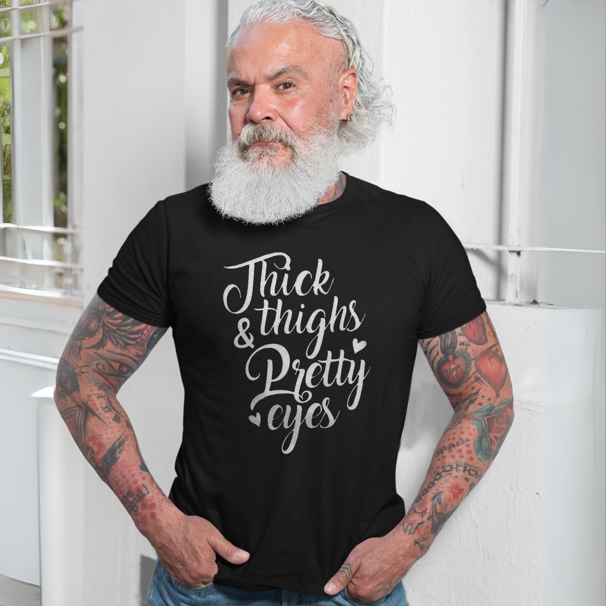 Thick Thighs Pretty Eyes Script Font T-Shirt
