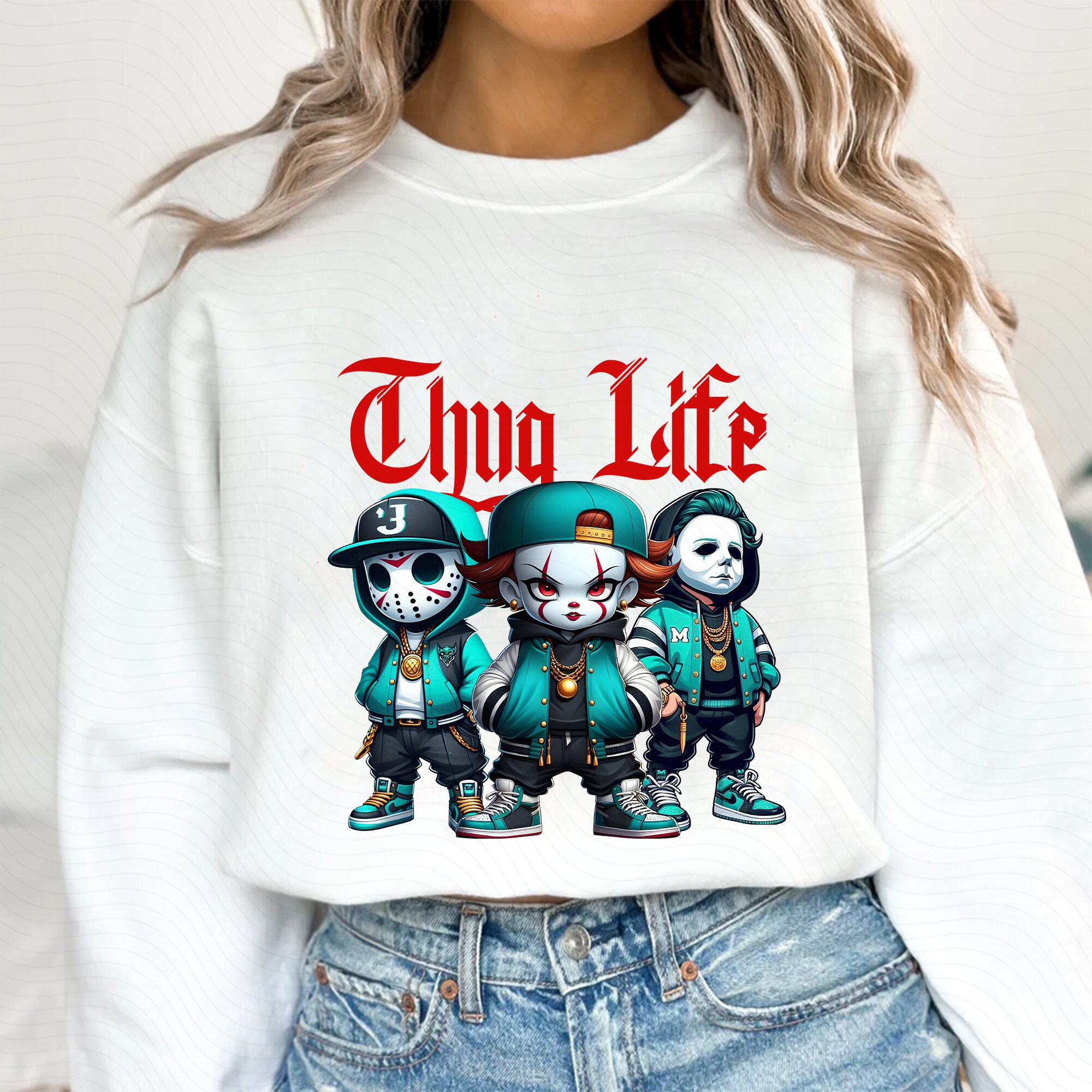 Thug Life Baby Horror Icons Sweatshirt – Cute Halloween Villains Crewneck