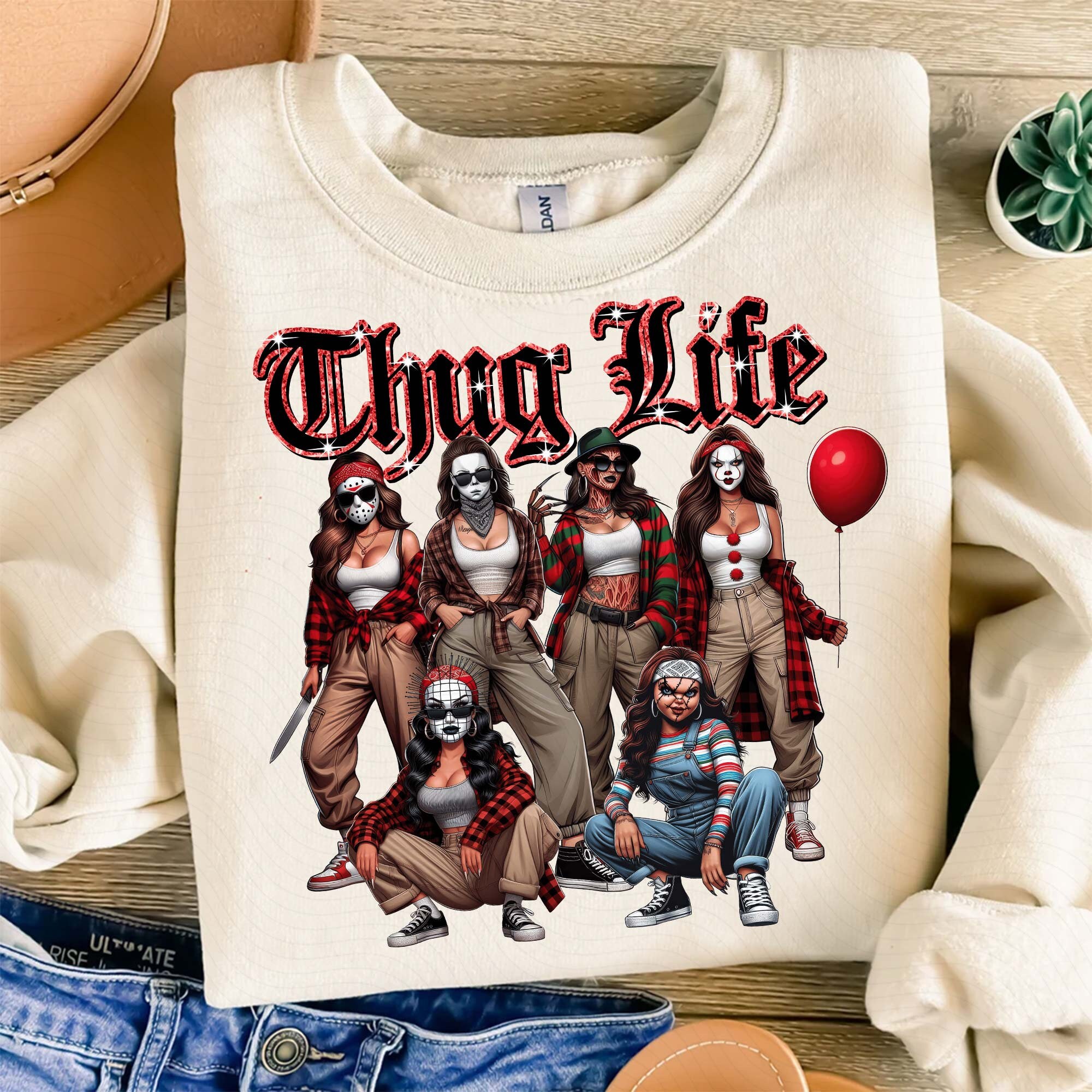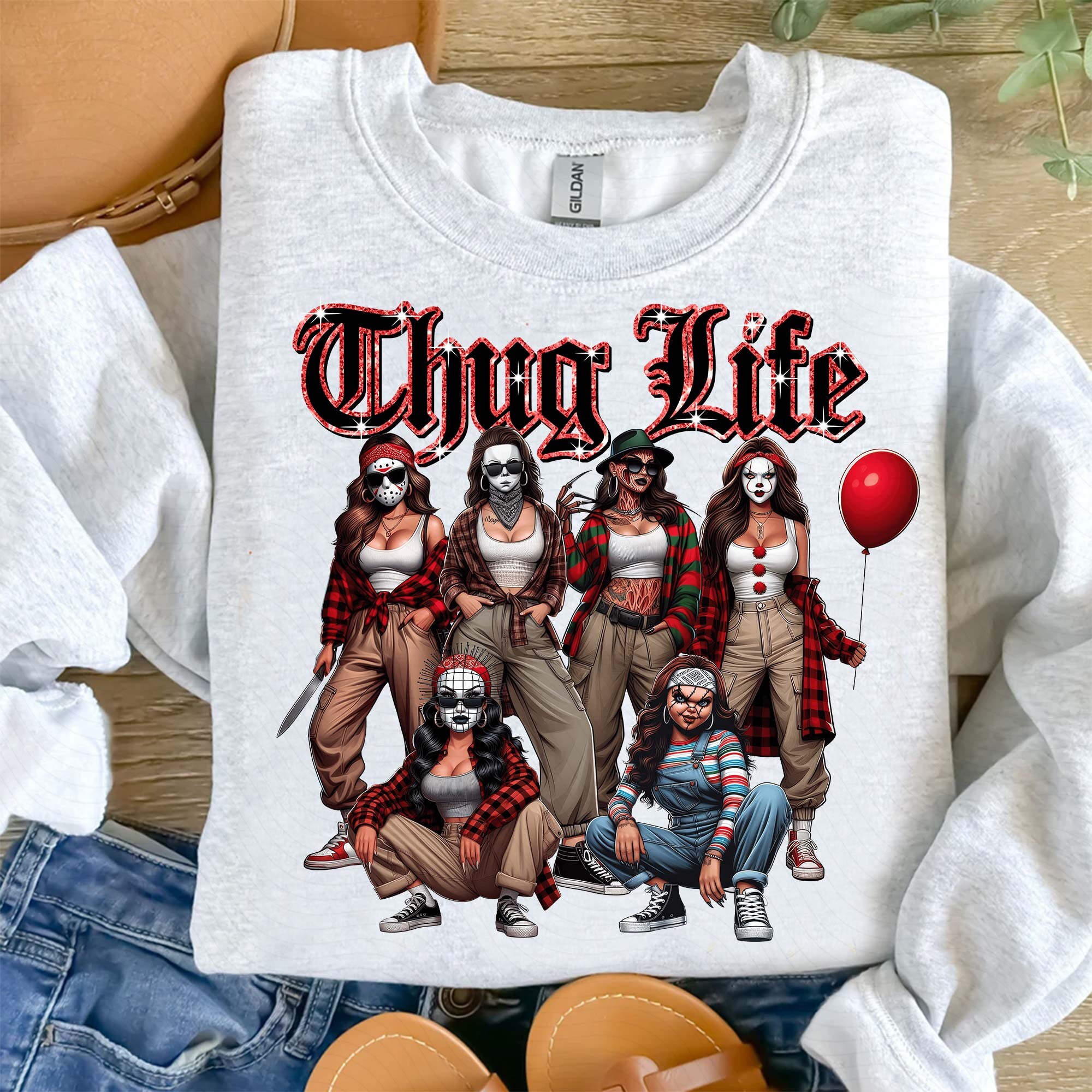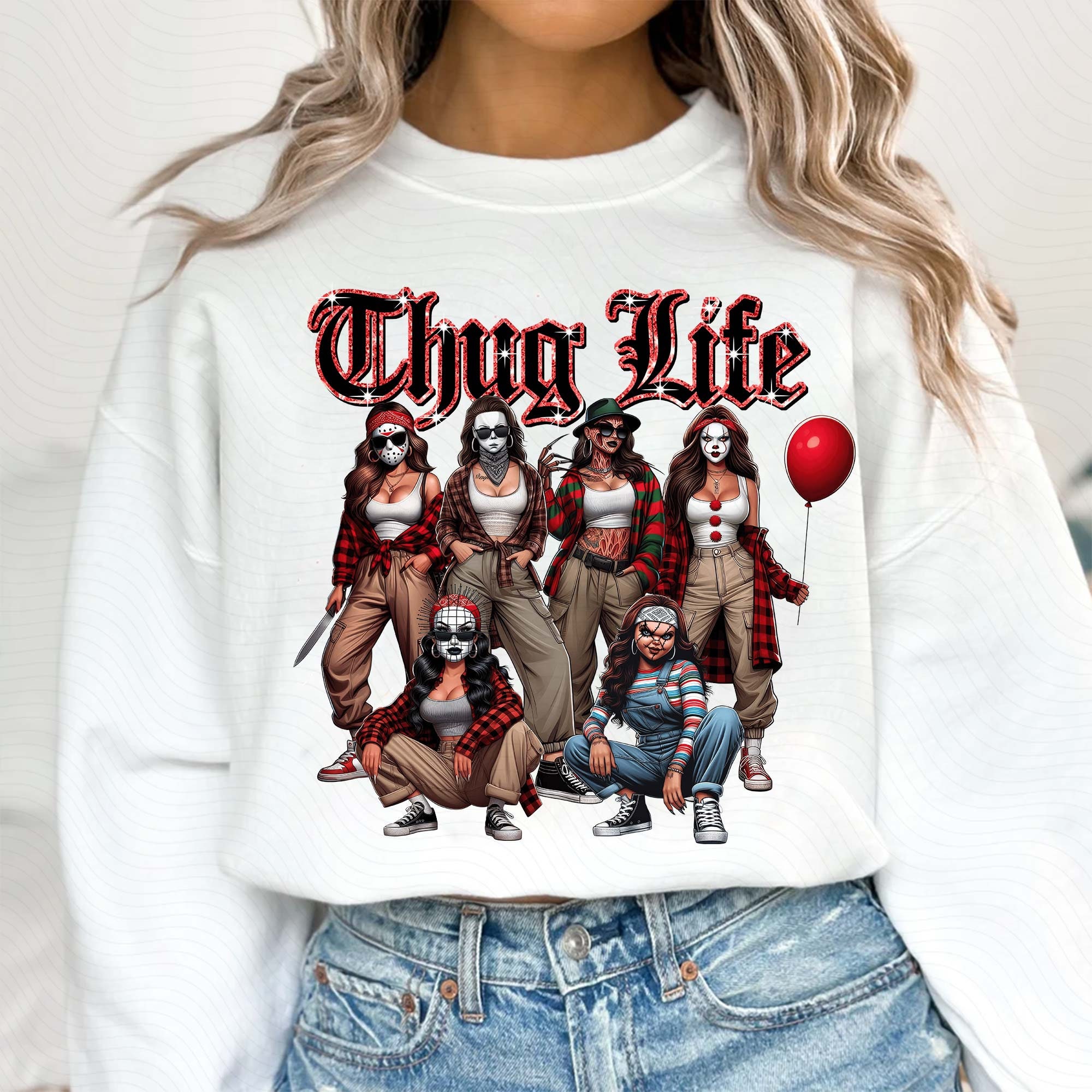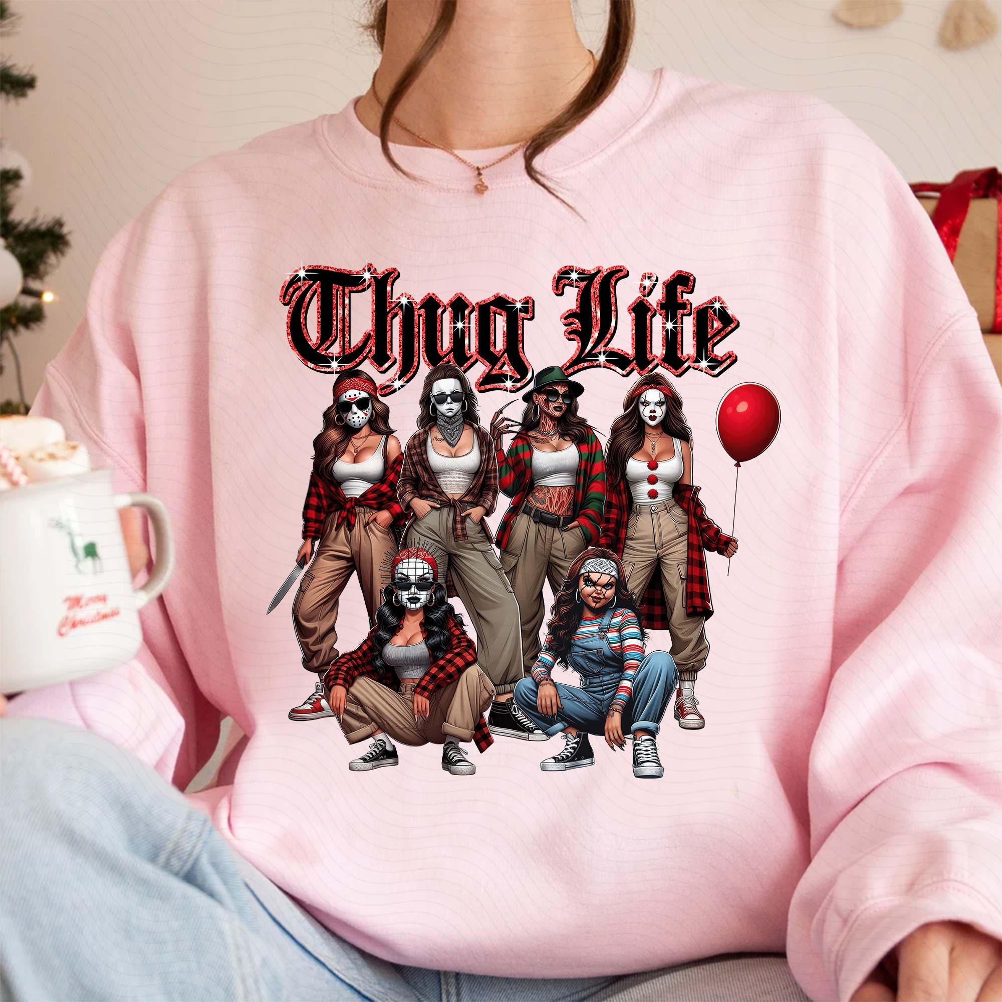 Thug Life Horror Chola Girls Sweatshirt – Halloween Scary Movie Villains Tee