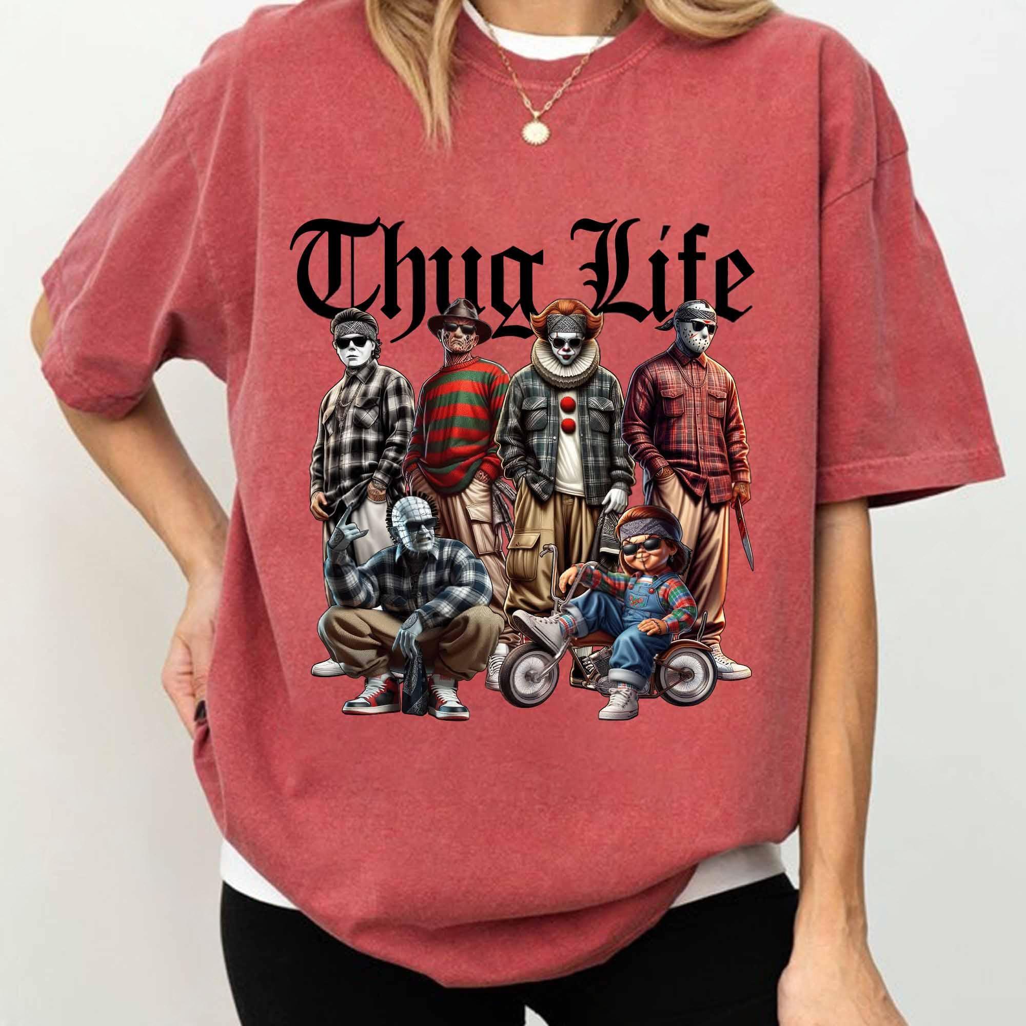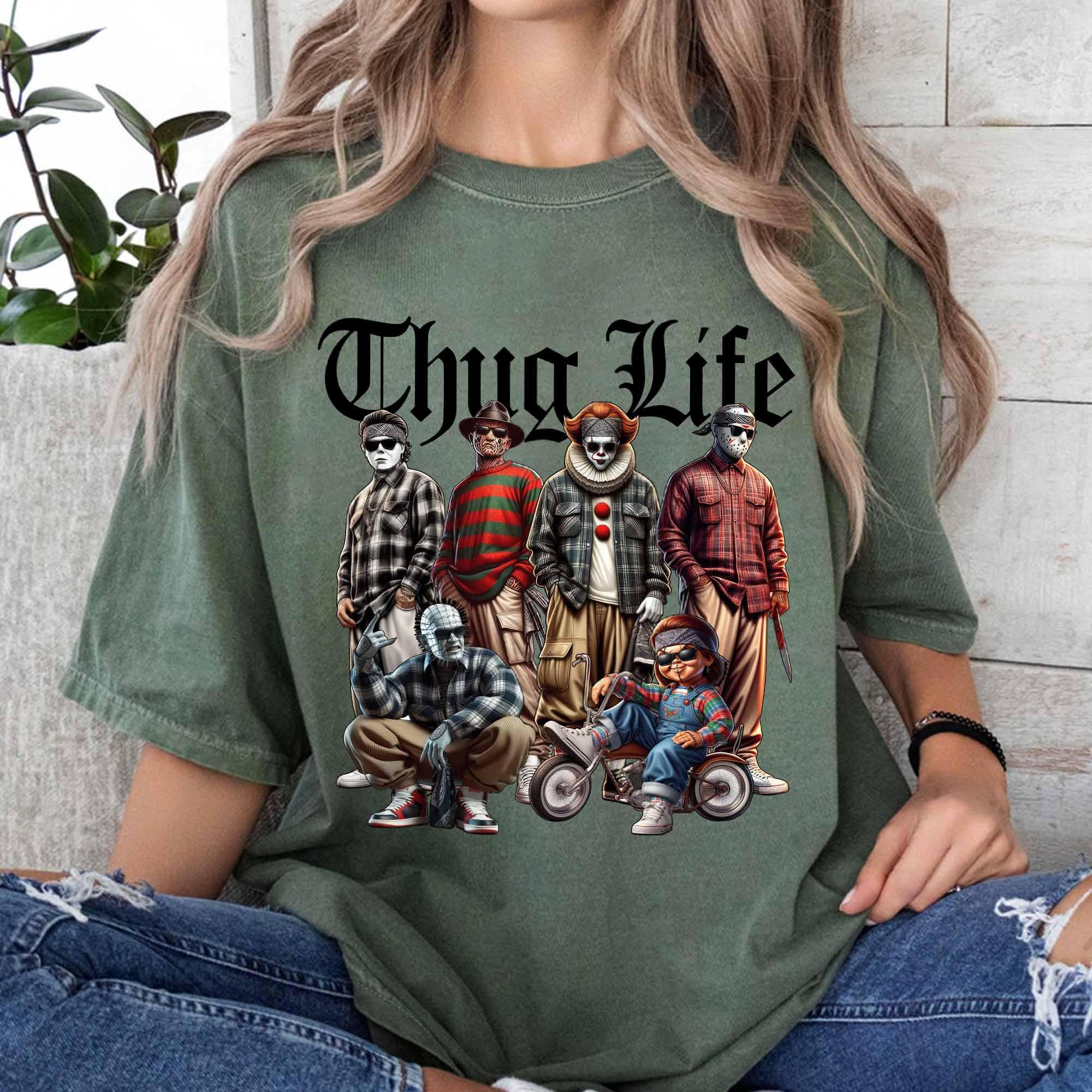 Thug Life Horror Cholo Shirt – Funny Slasher Villains Plaid Gang Tee