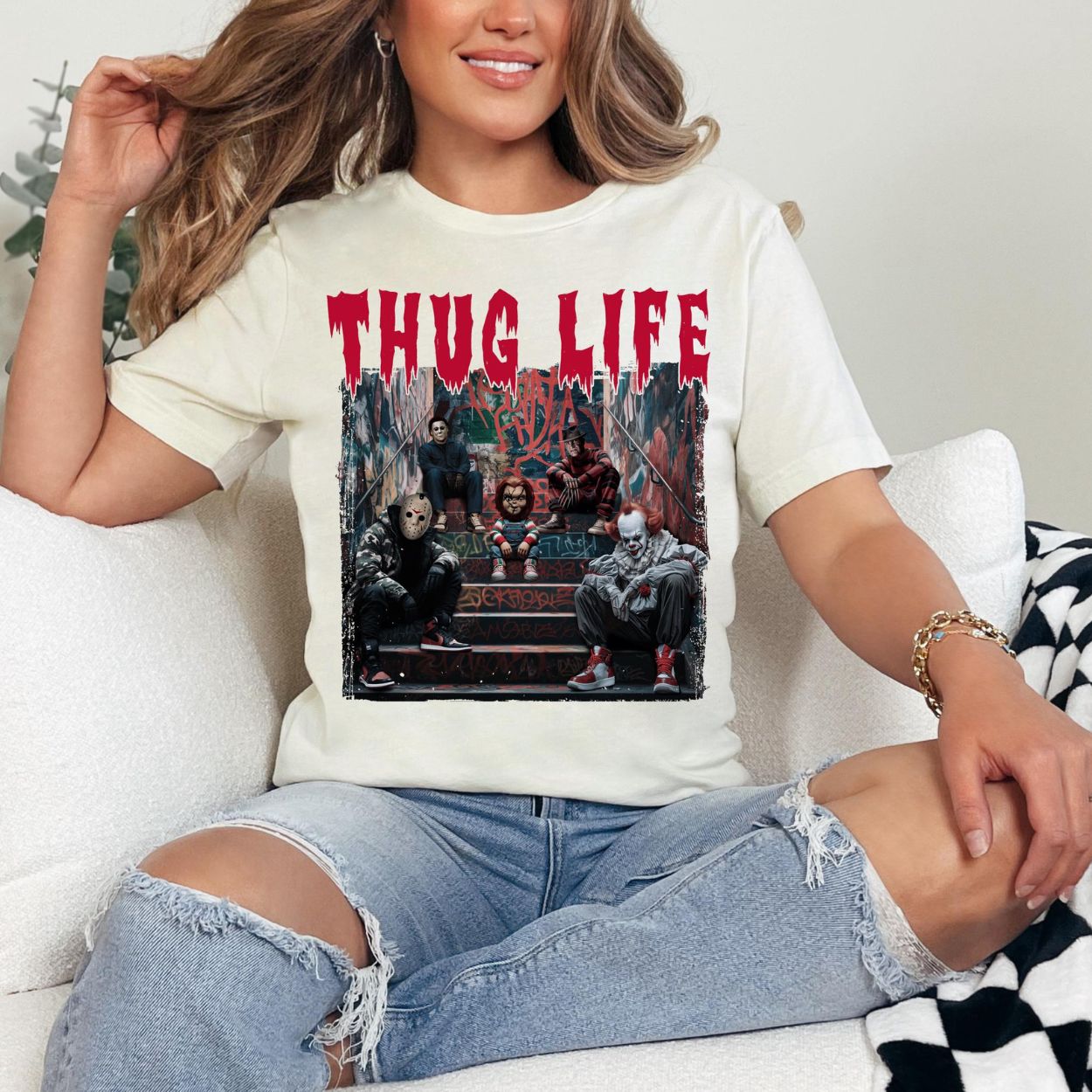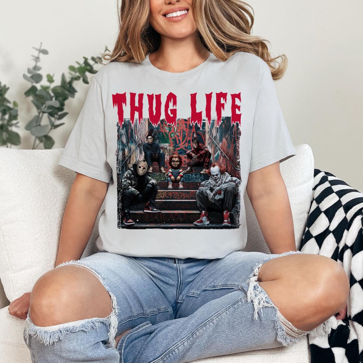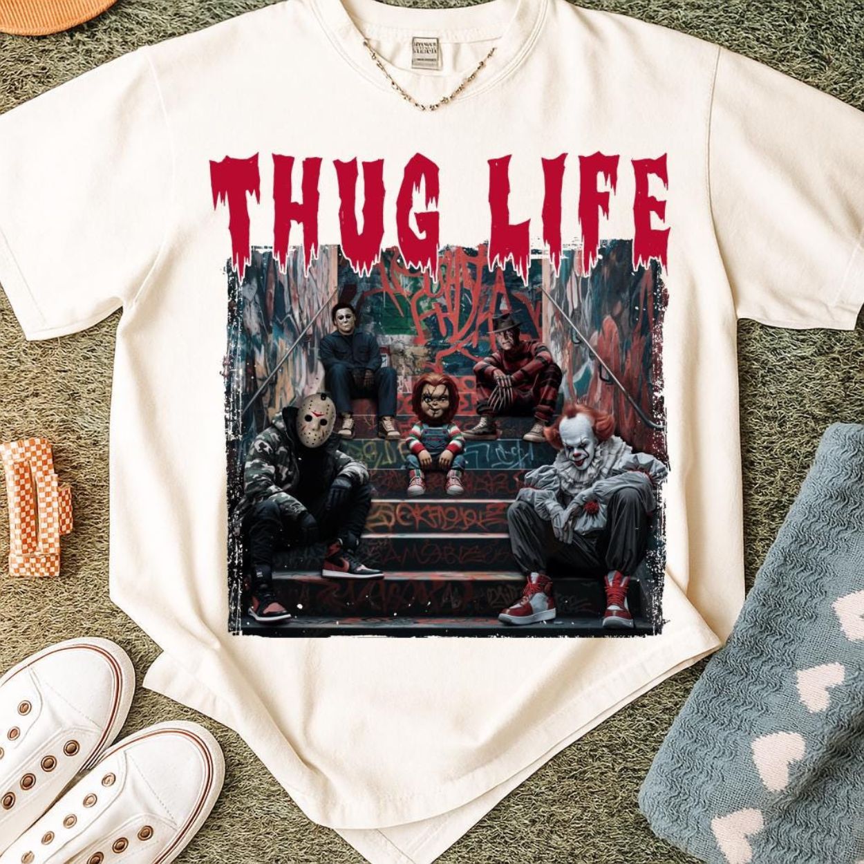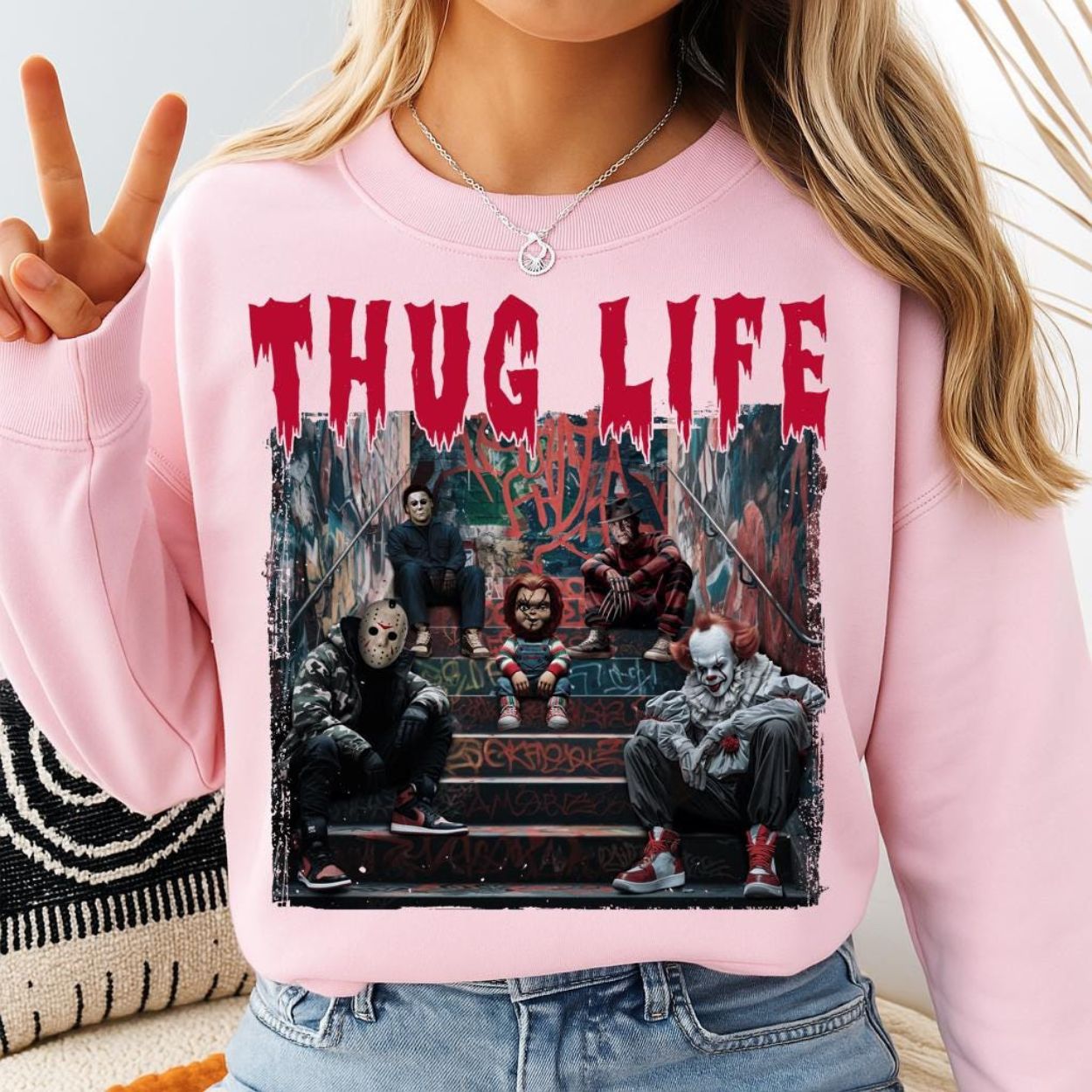 Thug Life Horror Villains Sweatshirt – Graffiti Street Style Halloween Crewneck
