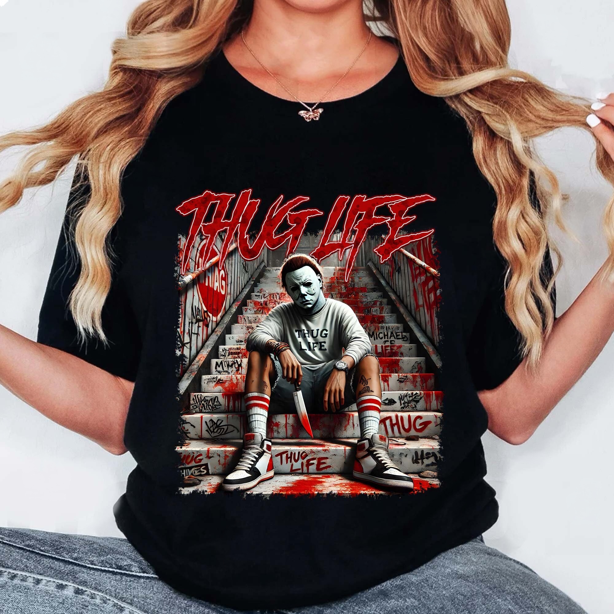 Thug Life Michael Myers Shirt – Street Style Halloween Horror Tee
