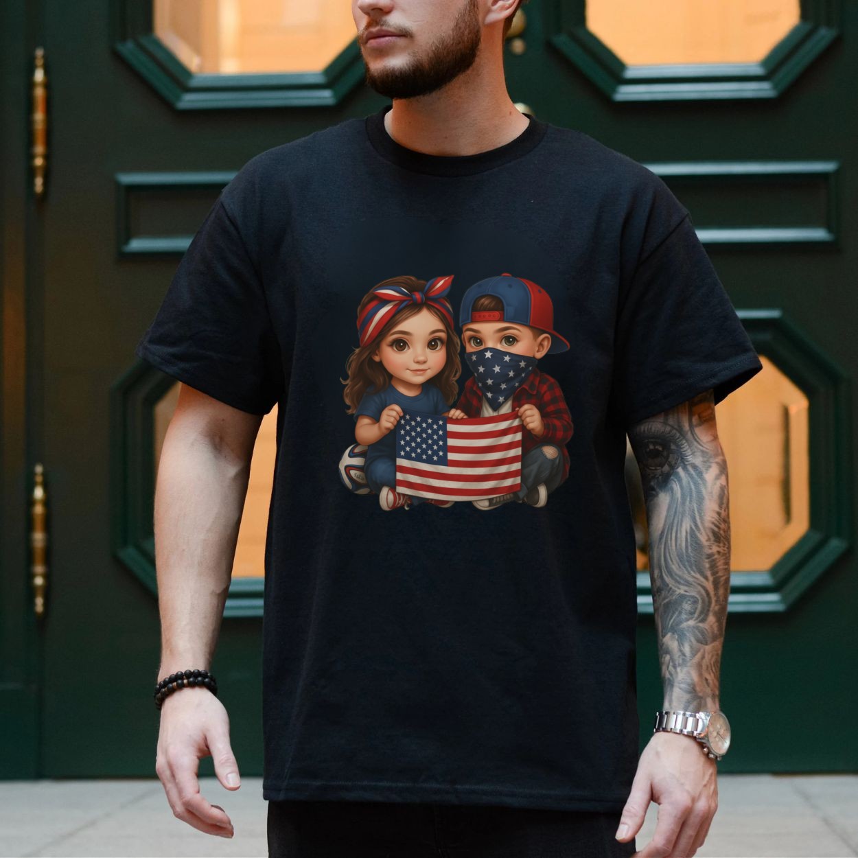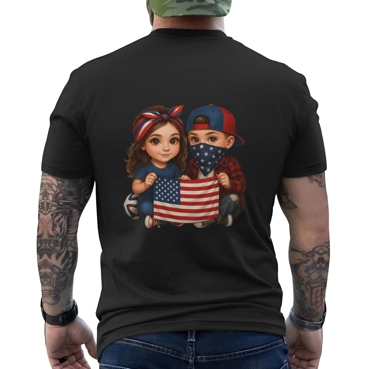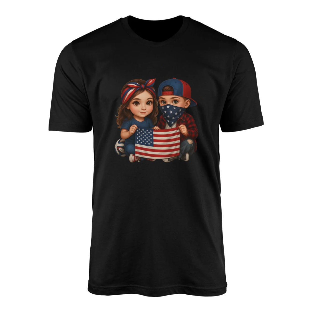 USA Flag Kids Cartoon T-Shirt
