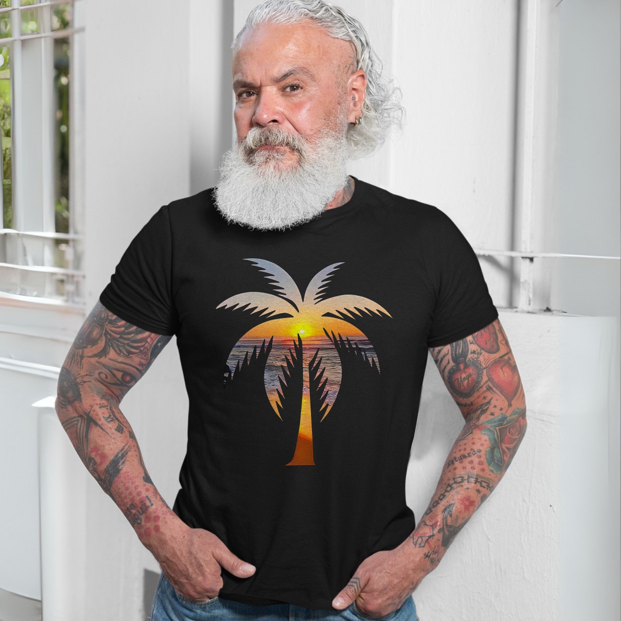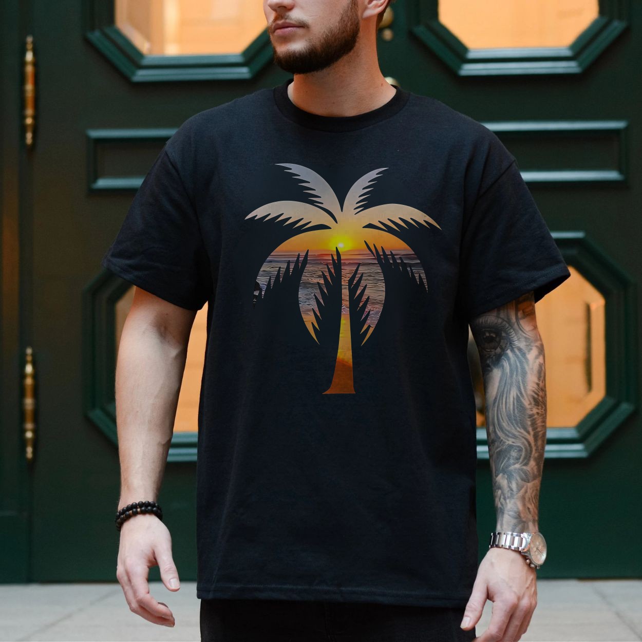 Vintage Beach Sunset Palm Tree Ocean T-Shirt