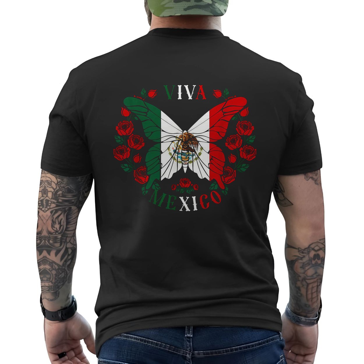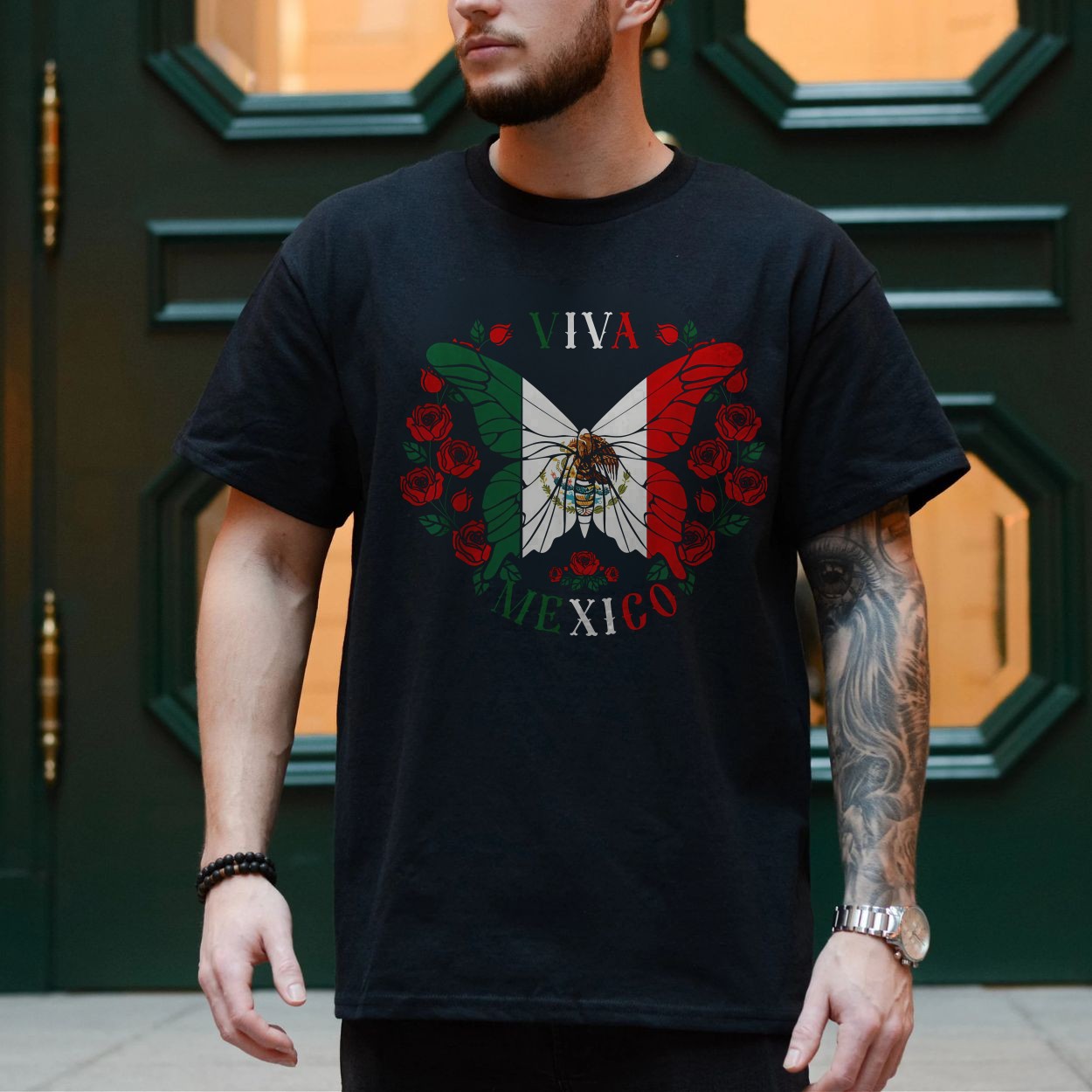 Viva Mexico Butterfly Flag Eagle Roses Heritage Pride T-Shirt