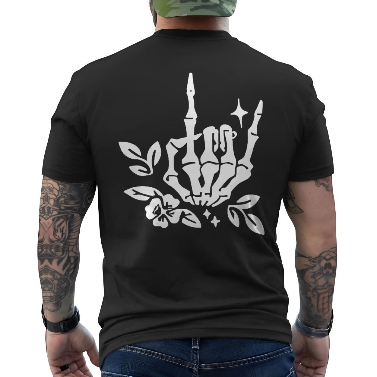 Witchy Goth Skeleton Hand T-Shirt Floral Rock On Alt Apparel
