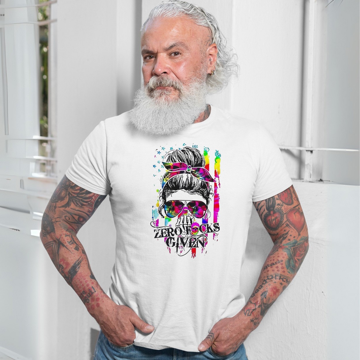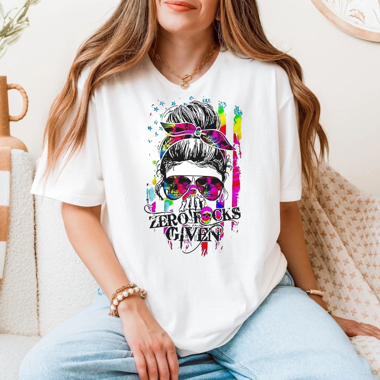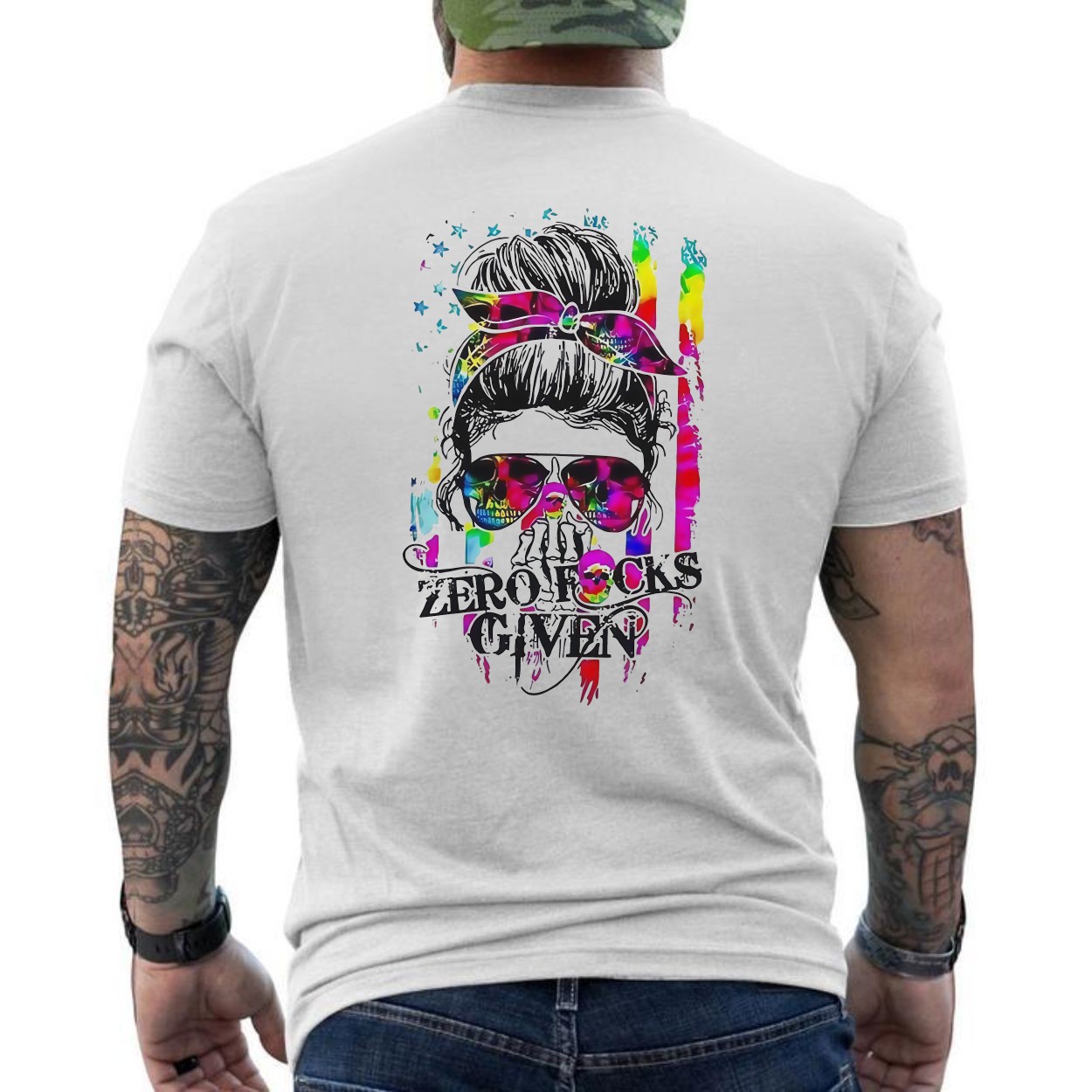 Zero Fks Given Colorful Skull T-Shirt – Bold & Expressive Style